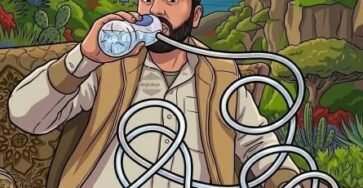Véleményem szerint a férfi vizet iszik. Ha alaposan megnézzük a csövek labirintusát, látni fogjuk, hogy a kezében tartott palackhoz csatlakoztatott…