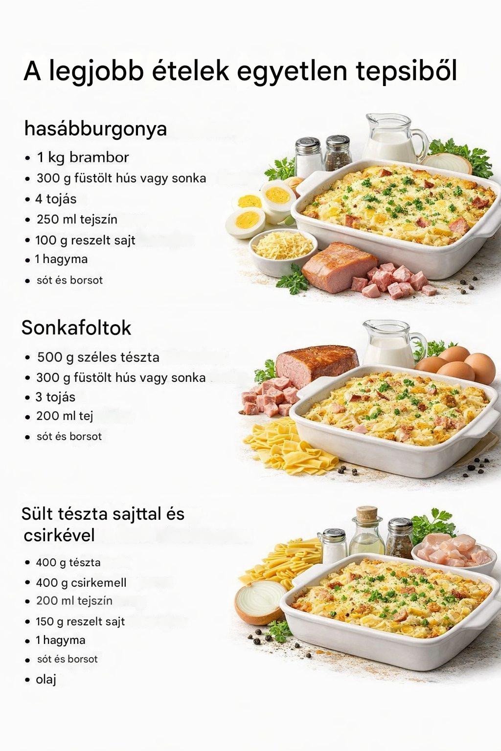 Az egy tepsiben sült ételek a háztartásainkban a legnépszerűbb fogások közé tartoznak. Nem csoda, mert könnyen elkészíthetők, az egész családnak jóllakatják őket, és minimális étel marad. Csak aprítsd fel a hozzávalókat, tedd a tepsibe, és sütés közben már csinálhatsz is valami mást. Ezeknek az ételeknek a jellemzője az alapvető hozzávalók használata.