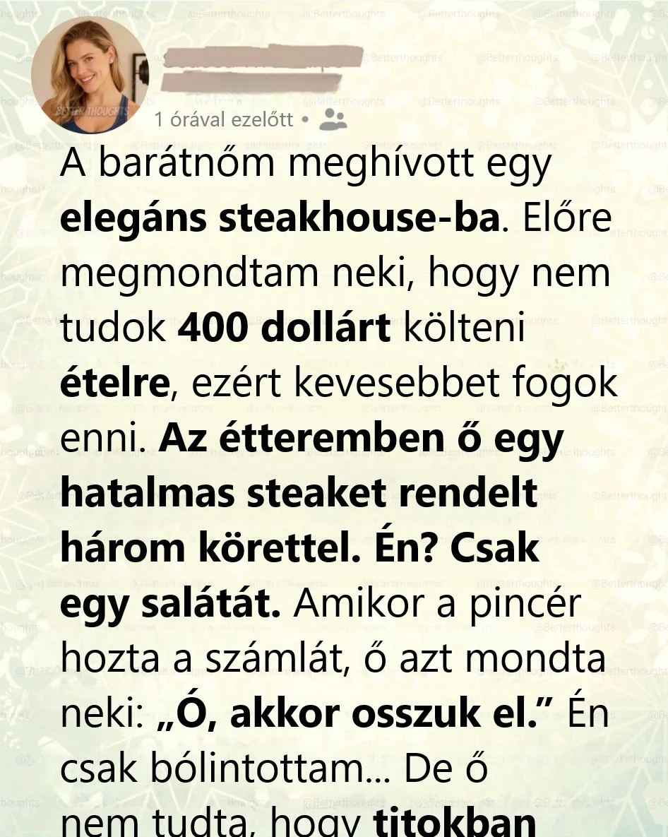 Meg kellett volna bíznom abban a kis görcsben a gyomromban, amikor elküldte az étterem nevét. Az a fajta steakhouse volt, ahol az online menüben nincsenek árak. Plüssboxok, félhomály, és pincérek, akik nem lépnek, inkább suhanak.