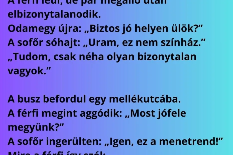 A férfi felszáll a buszra, és megkérdezi a sofőrt: