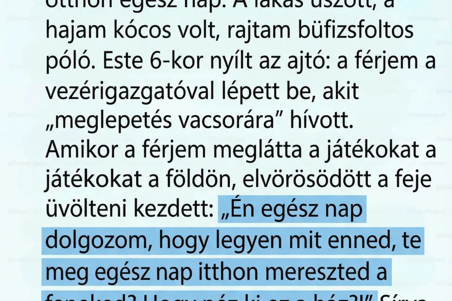 A férjem bejelentés nélkül állított haza a vezérigazgatóval vacsorára – amikor meglátta a kupit és üvölteni kezdett velem, a főnöke olyat szólt, hogy köpni-nyelni nem tudott