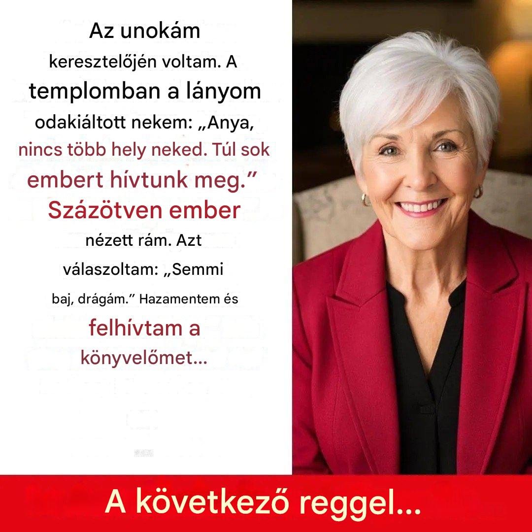 Néha nem a nagy viták törik össze a szívet, hanem néhány szó, amit a legalkalmatlanabb pillanatban, tanúk előtt suttogtak. Azon a napon a 68 éves Claire aprólékosan felkészült unokája keresztelőjére. Mindent megszervezett, finanszírozott, és minden részletet megtervezett. De a templom bejáratánál a saját lánya szólt hozzá: „Nem ide tartozol, anya.” Egy mondat, ami mindent megváltoztatott. Egy mondat, ami paradox módon új irányba terelte az életét.