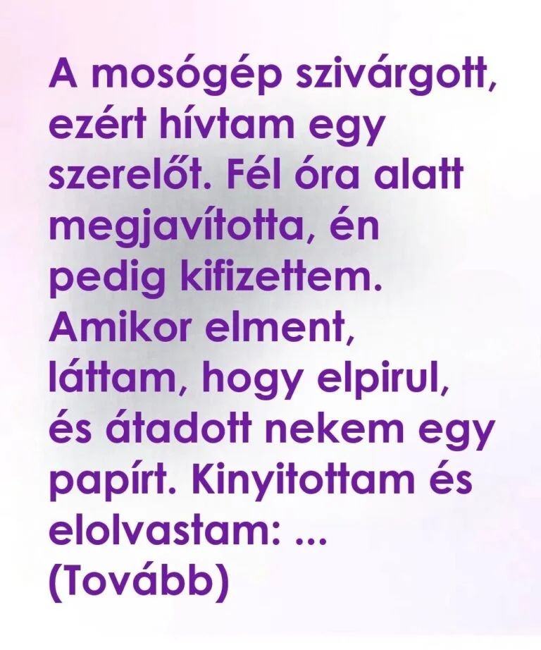 A mosógép-szerelő adott nekem egy cetlit, de az egyáltalán nem rólam szólt