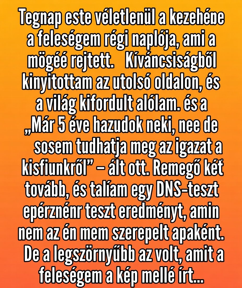 Az egész életem egy pillanat alatt omlott össze. Ott ültem a földön a hálószobában, a kezemben a naplóval, és a szoba hirtelen idegennek tűnt. Marci, a kisfiam, a másik szobában békésen aludt. Vagyis… az a kisfiú, akit az fiamnak hittem.