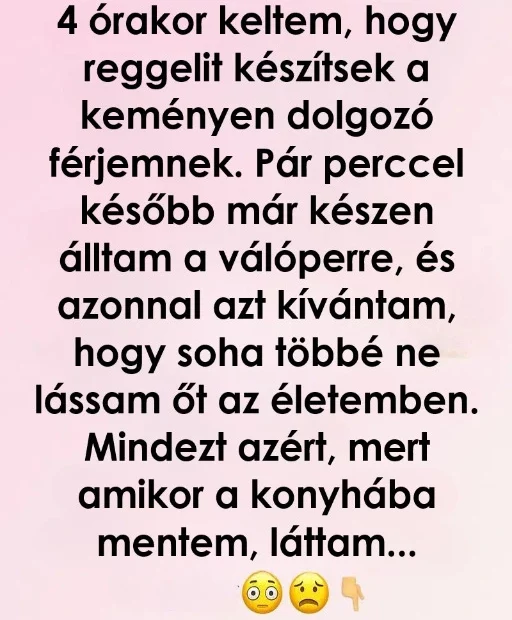 Alig néhány perccel ezelőtt még szent meggyőződésem volt, hogy végleg lezárom a házasságomat. Úgy éreztem, egyetlen pillantást sem szeretnék többé vetni a férjemre. Mindezt csak azért gondoltam így, mert megpillantottam valamit a konyhában.