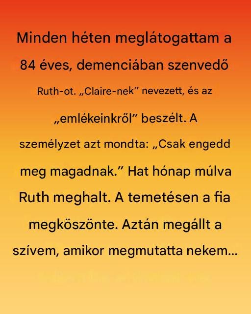 Később a folyosón magyarázta. “A lánya, Claire, évekkel ezelőtt meghalt. Ruthnak előrehaladott demenciája van. Összezavarodik. Kegyesebb nem javítani őt.”