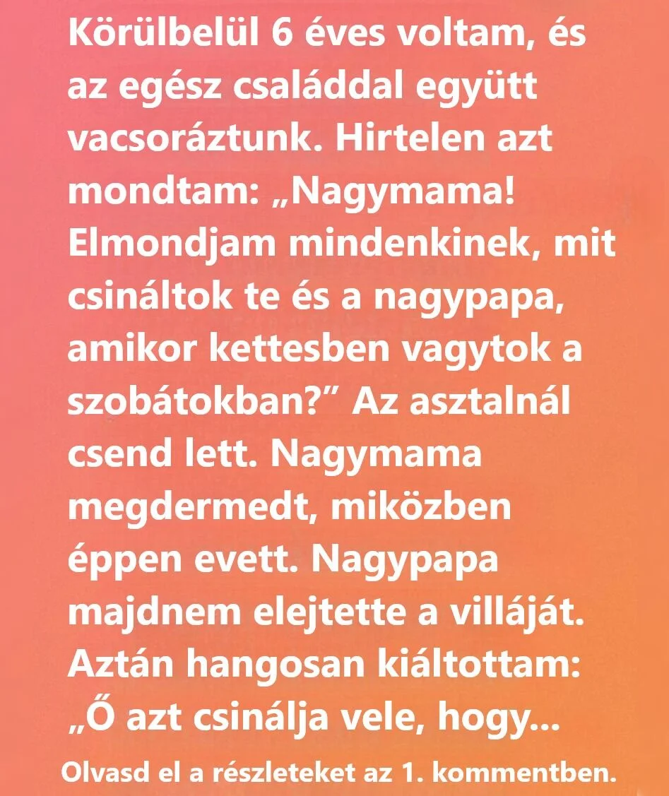 „Nagyi! Elmondjam mindenkinek, mit csináltok a nagypapával, amikor bementek a szobátokba?”