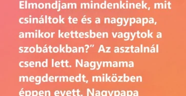 A vacsora, ami egy pillanat alatt elnémult Kb. hatéves voltam, amikor ez megtörtént. A család mind ott ült a nagy asztal körül.…