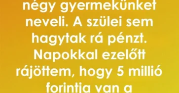 Azt gondoltam, teljesen ismerem a feleségemet. Amióta megszületett az első gyermekünk, otthon van. Négy gyereket nevel, a háztartást viszi, a…