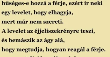 A feleség meg akarja tudni, hűséges-e hozzá a férje, ezért ír neki egy levelet, hogy elhagyja, mert már nem szereti.…