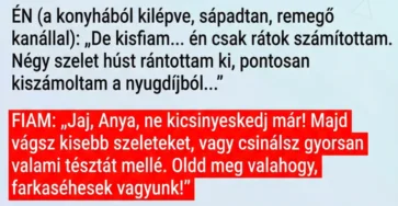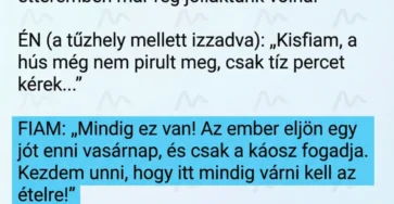 A fiam az asztalnál dörömbölve reklamálta a vasárnapi ebédet: „Kezdem unni a várakozást!” – a férjem ekkor a kezébe nyomta a kabátját, és olyat mondott, hogy megfagyott a levegő