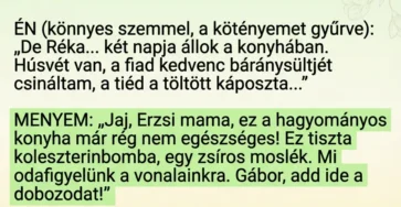 A menyem „zsíros mosléknak” nevezte az ünnepi ebédemet, és saját ételhordót vett elő az asztalnál – a férjem ekkor felállt, és olyat tett a dobozokkal, hogy megfagyott a levegő
