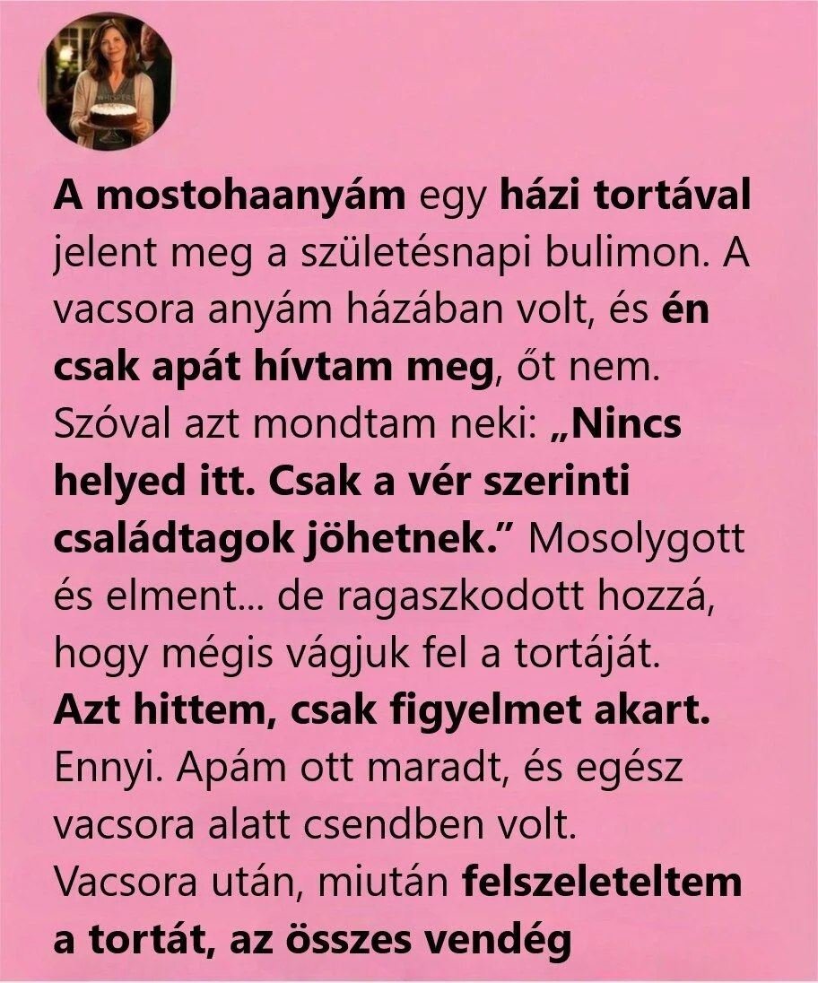 A mostohám a születésnapi vacsorámra érkezett, a kezében egy házi tortával, pedig nem is kértem.