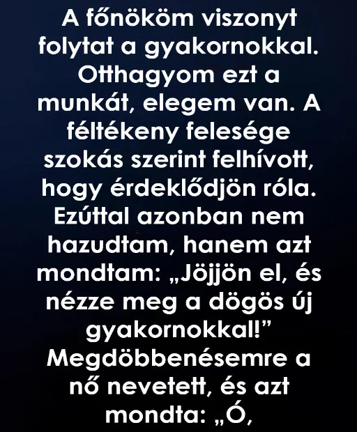 Amikor az első munkahelyemre kerültem, nem számítottam arra, hogy a pletykák és feszültségek ennyire átalakítják a légkört, és engem is beszippantanak. Egy telefonhívás a főnököm feleségétől azonban egyetlen pillanat alatt leleplezte, mennyire félrevezető lehet a látszat, és hogy egy hiányzó információ teljes történeteket torzíthat el. Ez az élmény megtanított megállni, különválasztani a tényeket a feltételezésektől, és óvatosabban bánni a kimondott vádakkal.