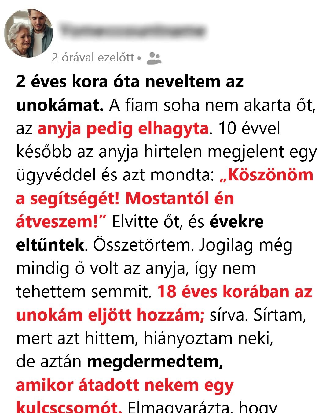 Egyedül neveltem az unokámat, aztán az anyja elvitte. 18 évesen visszatért, és olyan ajándékot hozott, amire nem számítottam 👇 𝐅𝐨𝐥𝐲𝐭𝐚𝐭𝐚́𝐬 𝐚 𝐡𝐨𝐳𝐳𝐚́𝐬𝐳𝐨́𝐥𝐚́𝐬𝐨𝐤𝐧𝐚́𝐥!