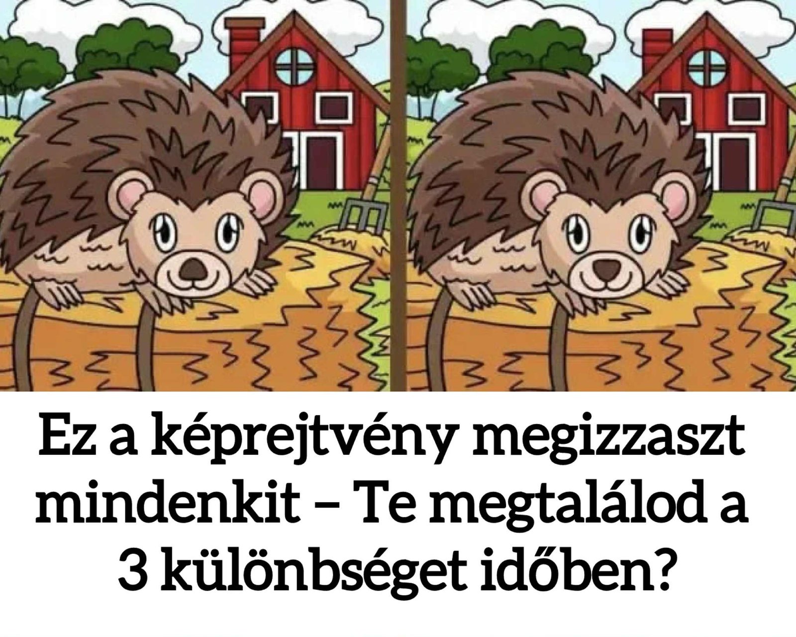 Mindkét képen egy aranyos kis süni látható a középpontban. Első pillantásra teljesen egyformának tűnnek, de valójában három részlet különbözik. Az igazán éles szeműek képesek mindet kiszúrni a megadott idő alatt – ez viszont nem kis teljesítmény, hiszen ehhez nemcsak jó látás, hanem kiemelkedő koncentráció is kell.