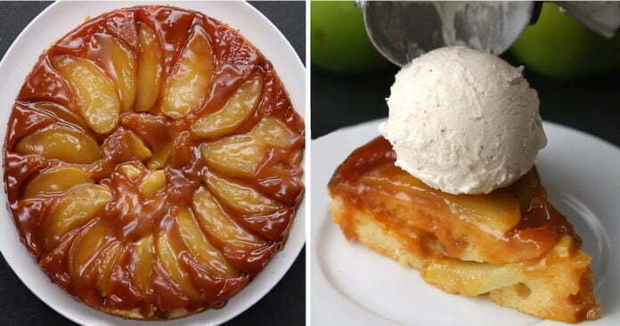 Fordított almás süti, csak keverj össze minden hozzávalót és öntsd a tortaformába! Finom!