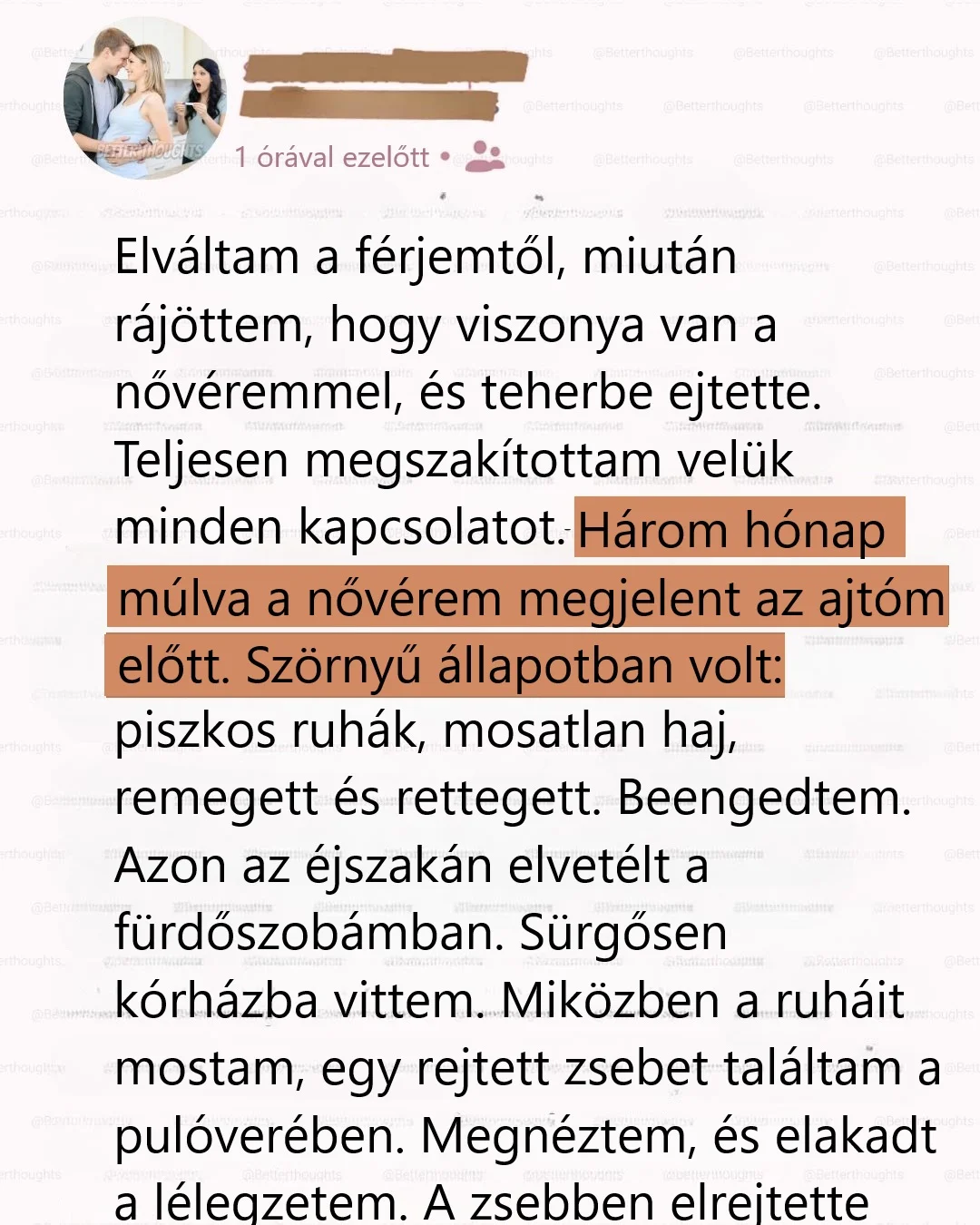 Élesen emlékszem a konyhánkra. Úgy remegett a kezem, hogy a pultba kellett kapaszkodnom. A férjem képtelen volt a szemembe nézni. A nővérem sírt, azt hajtogatta, hogy „csak megtörtént”, és hogy nem akart beleszeretni. Ezek a szavak marták a fülem.
