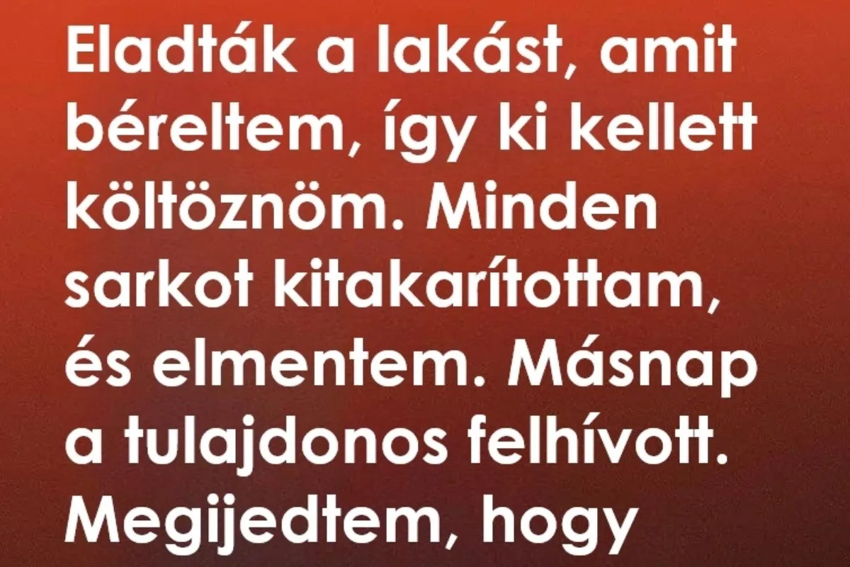 Amikor a bérleményt eladták, nekem már csak a költözés maradt hátra. Alaposan kitakarítottam a helyiséget, becsukottam az ajtót, és egy kissé meghatódva léptem ki. A lakás több volt egyszerű albérletnél – otthonként szolgált abban a nehéz időszakban, amikor munka miatt új városba költöztem, ismeretlenekkel körülvéve.