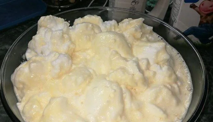 Egy liter tejet felteszek forrni , közben felverem a tojás ( 7-8db ) fehérjét.