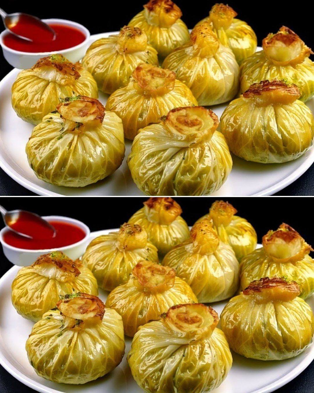 Ezek a finom káposztás momók a hétköznapi káposztaleveleket elegáns csomagokká varázsolják, ízletes rizs, hús és gomba keverékével töltve. Kis ajándékcsomagokként csomagolva, fűszeres, aromás paradicsomszósszal tálalva ezek a káposztatekercsek egyszerre szépek és hihetetlenül finomak.