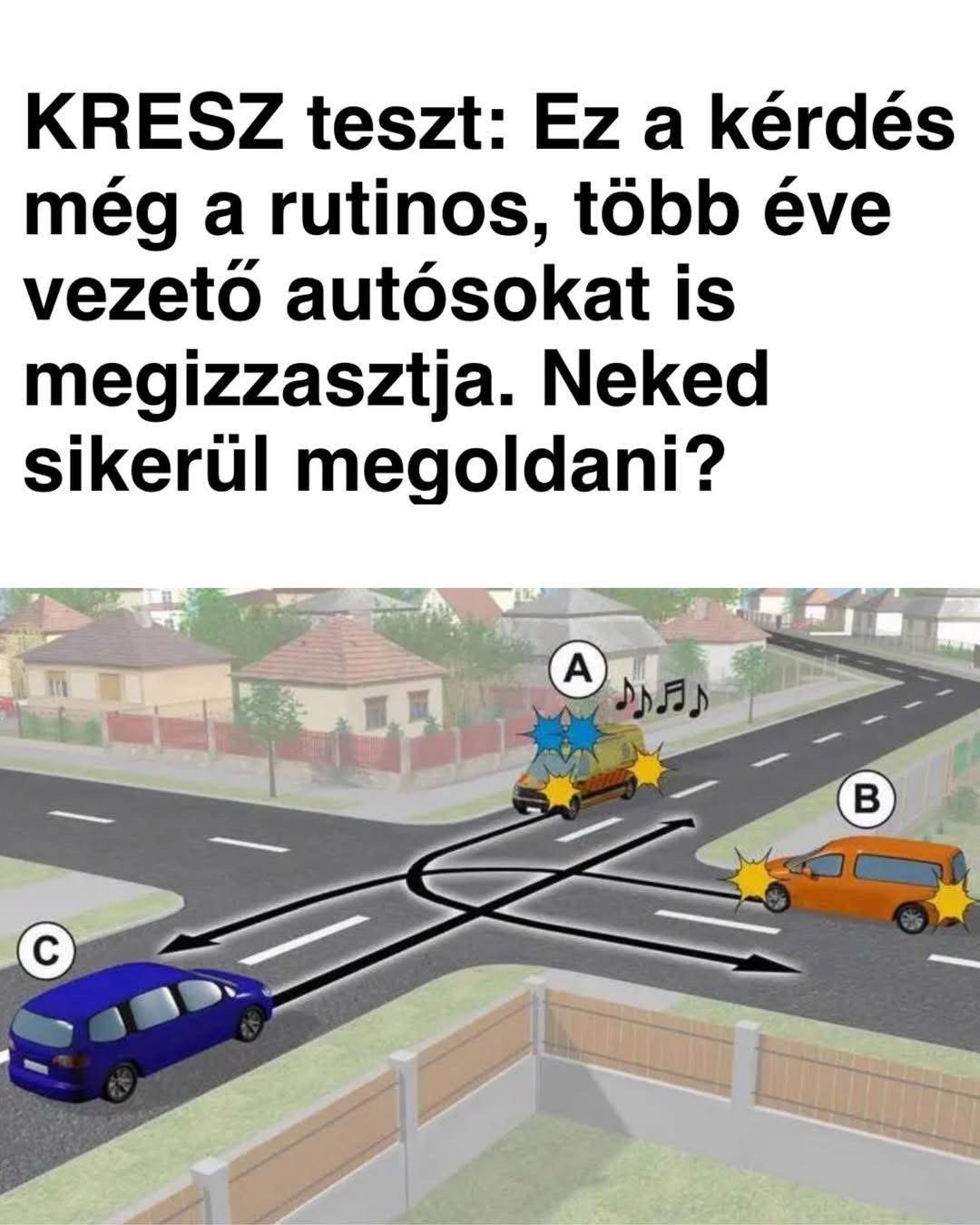 Sok tapasztalt, több éve vezető sofőr is elgondolkozik, ezen a látszólag egyszerűnek tűnő KRESZ-feladaton, még számukra is komoly fejtörést okozhat, pedig ez egy gyakori szitucáió a közlekedésben. Első ránézésre minden egyszerűnek tűnik, hiszen az ilyen helyzetek a közúti közlekedés során is gyakran előfordulnak.