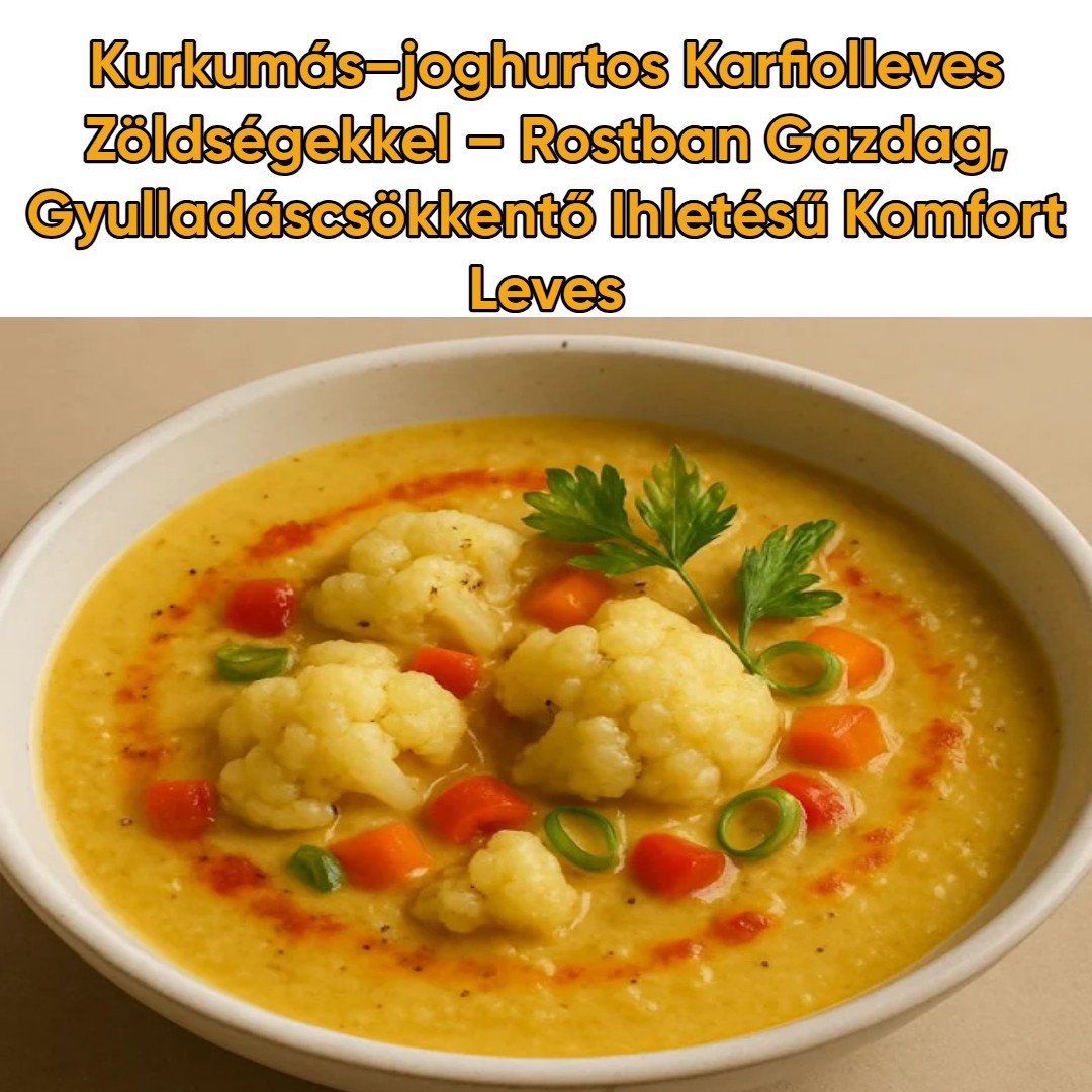 A krémes, mégis darabos karfiolleves kurkumával, joghurttal és sok zöldséggel kap modern, könnyű csavart. Komfort, mert meleg és selymes, kímélő ízű, könnyen emészthető, rostban gazdag, és a legegyszerűbb „házi” alapanyagokkal ad megnyugtató, otthonos érzetet. A keresztesvirágú karfiol kénvegyületei, a kurkuma kurkuminja és a magas rostbevitel olyan mintázatot adnak, amelyet sok kutatás a kiegyensúlyozott, daganatmegelőzést támogató étrend részeként vizsgál. Nem csodaszérum, de segít több zöldséget és fűszert bevinni – klasszikus, házias ízzel.