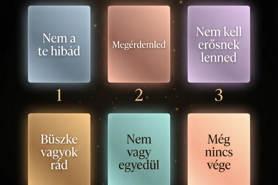 Hat mondat áll előtted. Mindegyik másról szól, mindegyik más sebet érint, más hiányt tölt be. Amelyik először megszólít – amelyiknél megáll a szemed, és valami összeszorul vagy éppen feloldódik benned –, az az a mondat, amit most hallanod kell. Nem véletlenül az. A lelked tudja, mire vár.