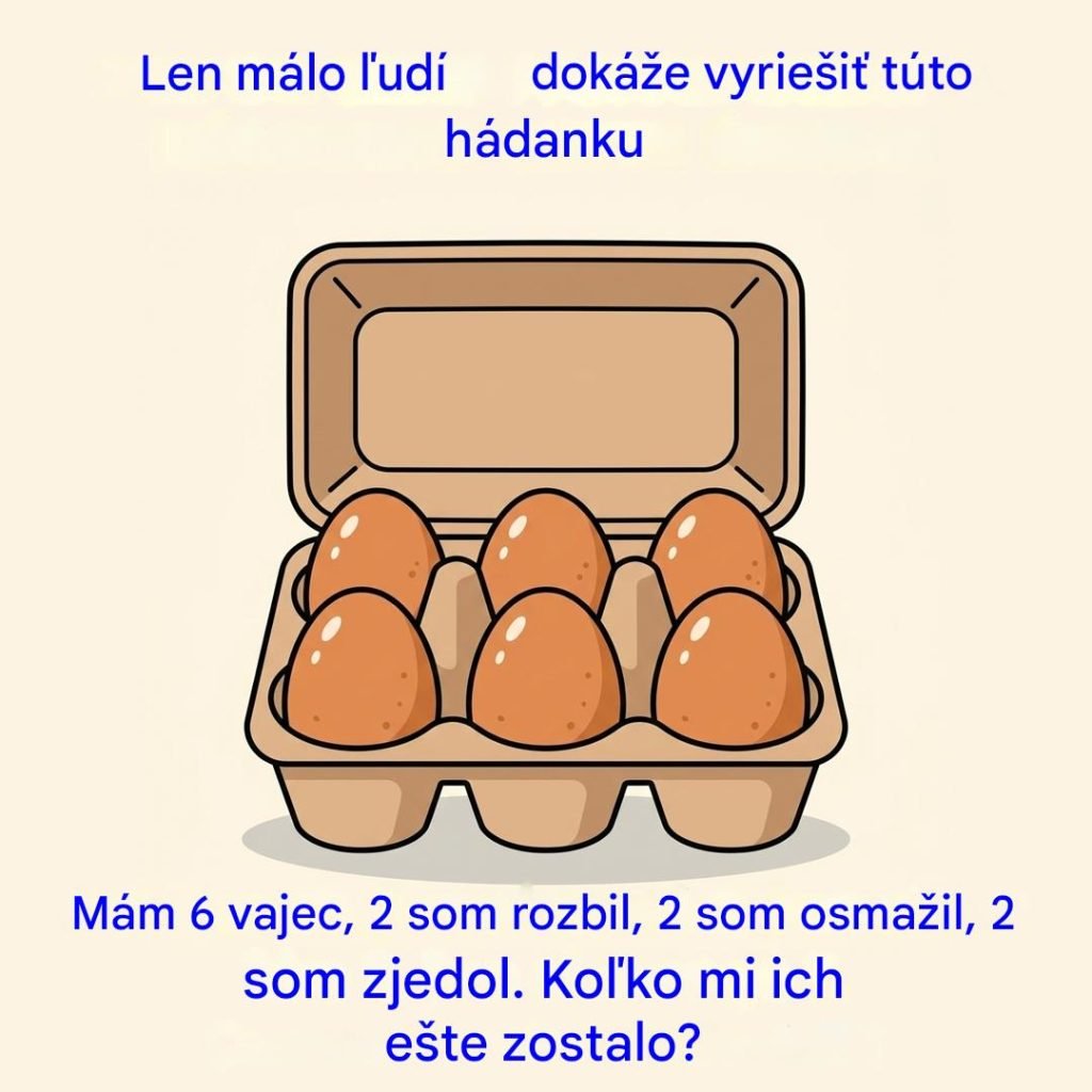 „Mám šesť vajec. Rozbil som dve. Dve som usmažil. Dve som zjedol. Koľko mi ich ešte zostalo?“