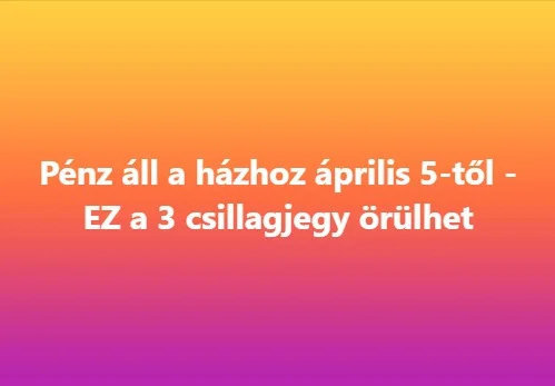 Az asztrológusok szerint április elején jelentős fordulat jön, és három csillagjegy számára kifejezetten kedvező pénzügyi időszak kezdődik.A nehézségek után most végre fellélegezhetnek.