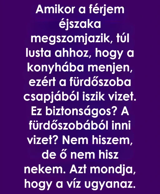 Az éjszakai rutinunk egyszerű volt, semmi különös: a férjem felkelt, megszomjazott, eltipegett a fürdőbe, és a csapból ivott. A konyháig már nem ment le. Eleinte csak mosolyogtam rajta, de hónapok elteltével a szokás egyre jobban zavarni kezdett.