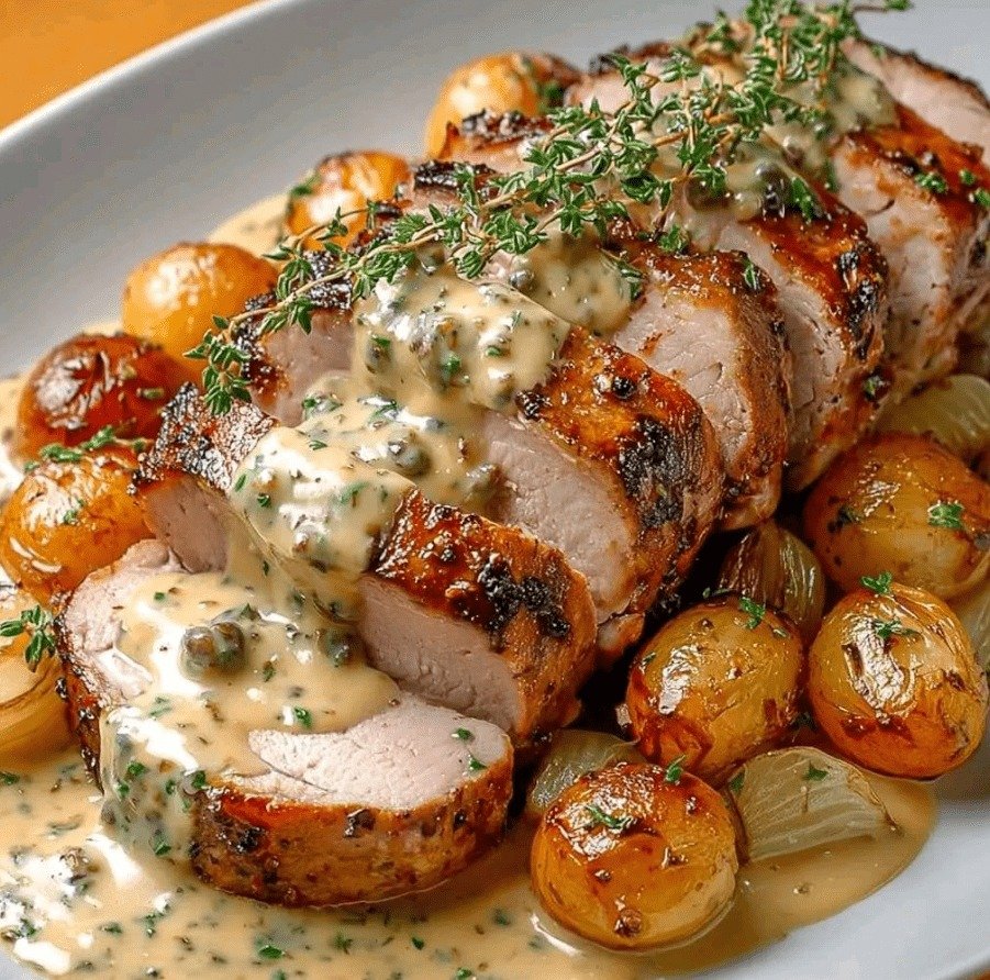 A sült sertésszűz örökség mustárral és olvadó hagymával egy kiadós és illatos étel, amely tökéletes családi étkezésekhez vagy meghitt vacsorákhoz. A lassú főzés kivételesen puha és szaftos húst eredményez, miközben a hagyma lassan megolvad és magába szívja a mustárlevet és aromákat.