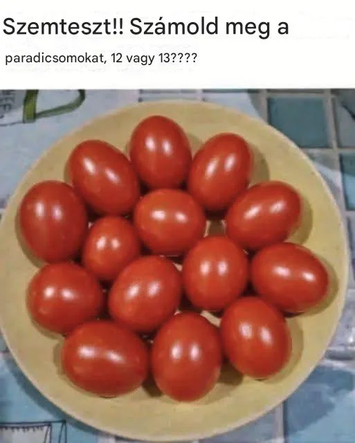 Néztél már már egy egyszerű képet, és teljesen összedöbbentél? Pontosan ez történik ezzel a vírusos “számold meg a paradicsomokat” képpel. Első pillantásra könnyű és játékos feladatnak tűnik: csak számold meg a tányéron lévő paradicsomokat, és döntsd el, hogy 12 vagy 13 évesek-e. De amint alaposabban nézel, gyorsan zavarossá válik a helyzet – és itt jön képbe az észlelés varázsa.