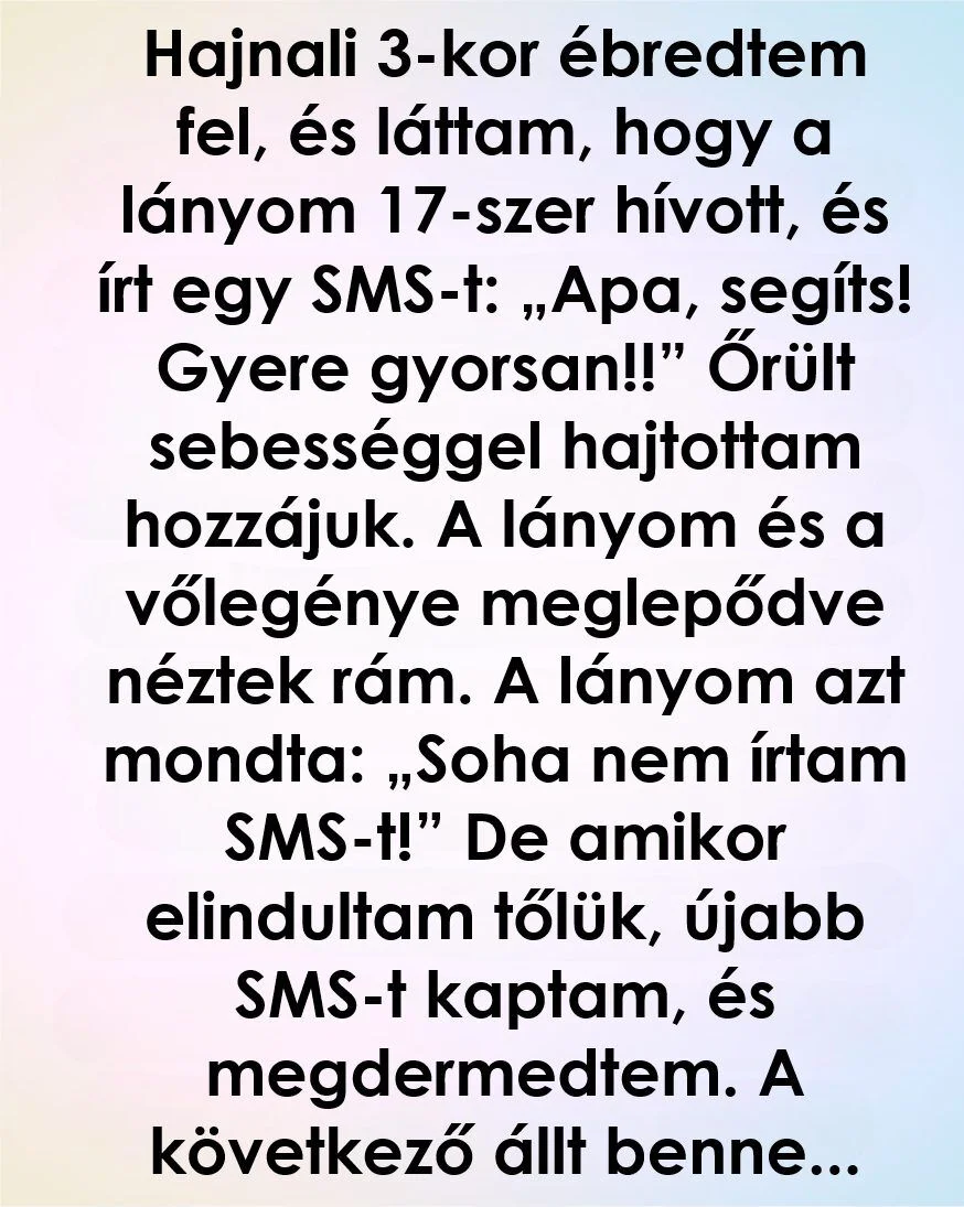 Hajnali 3-kor ébredtem arra, hogy a telefonom folyamatosan rezeg és világít. Tizenhét nem fogadott hívás a lányomtól. És egy üzenet, amitől megfagyott bennem minden: