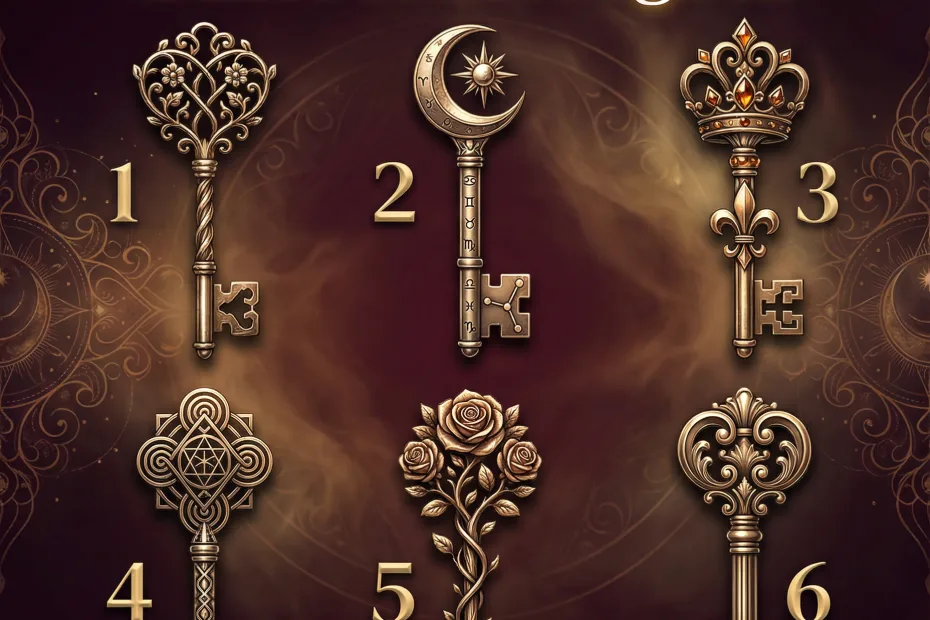 Az a kulcs, amely azonnal megkapta a tekinteted, az a tudatod alatt rejtőző vágyakat, félelmeket és titkos álmokat tükrözi vissza. Nem szükséges hosszasan gondolkozni rajta – a legjobb válasz az, amely azonnal megragadja a figyelmed. Összpontosíts most erre az öt percre, és hagyj lehetőséget az önfelfedezésre. Lépj be abba a világba, ahol a szimbólumok beszélnek, és ahol a választások az igazságot árulják el rólunk.